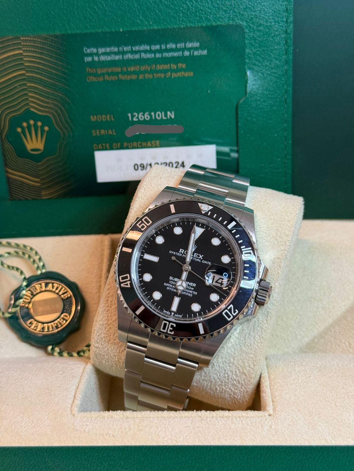 De Rolex Submariner Date 126610LN is dé moderne klassieker binnen de sportlijn van Rolex. Met de nieuwe 41mm kast, het geavanceerde Caliber 3235 en de herkenbare zwarte keramische bezel is dit horloge niet alleen technisch superieur, maar ook visueel indrukwekkend. Dit exemplaar uit 12/2024 verkeert in bijna nieuwstaat (99%), compleet met alles erop en eraan – ideaal voor wie direct wil instappen zonder de levertijd of nieuwprijs van de boutique.
